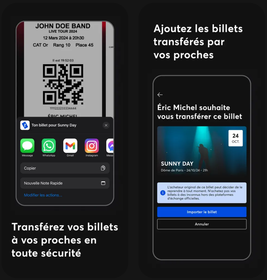 Si vous le souhaitez, vous avez aussi la possibilité de transférer un billet à un proche : il n’aura plus qu’à l’importer dans l’application pour l’ajouter automatiquement à son compte.